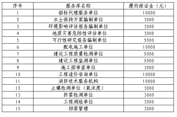 南平綠發(fā)集團(tuán)有限公司因經(jīng)營需要,擬成立服務(wù)庫,現(xiàn)實(shí)施2023年服務(wù)庫招錄,本次招錄合作期三年,要求如下: 一、本次招錄類別及資格條件 本次共招錄15個(gè)類別服務(wù)庫,綠發(fā)集團(tuán)及下屬公司在今后的工作中,在不違反有關(guān)法律、法規(guī)規(guī)定的前提下,結(jié)合集團(tuán)服務(wù)庫管理辦法,從服務(wù)庫中選擇具體的服務(wù)單位。滿足資格的南平市市屬國企單位可直接入庫,入庫的南平市市屬國企單位家數(shù)包含在對應(yīng)服務(wù)庫家數(shù)內(nèi)。若入圍家數(shù)少于3家不能形成有效竟?fàn)幍模瘓F(tuán)公司將從庫外另行再邀請相應(yīng)服務(wù)單位參與比選。本次具體類別及資格條件要求如下: 1. 招標(biāo)代理服務(wù)單位(10家) 具備提供工程招標(biāo)代理服務(wù)的企業(yè)法人單位。且根據(jù)《閩建筑函[2018]26號》的規(guī)定投錄人應(yīng)當(dāng)取得公司法人《營業(yè)執(zhí)照》(登記營業(yè)范圍須包含工程招標(biāo)代理業(yè)務(wù))且完成并通過福建省住房和城鄉(xiāng)建設(shè)政務(wù)服務(wù)系統(tǒng)登記企業(yè)基本信息。(提供營業(yè)執(zhí)照復(fù)印件加蓋公章、福建省住房和城鄉(xiāng)建設(shè)政務(wù)服務(wù)系統(tǒng)登記證明材料加蓋公章) 2. 水土保持方案編制單位(5家) 具備建設(shè)項(xiàng)目水土保持方案編制水平評價(jià)證書 1星及以上資質(zhì)。(提供營業(yè)執(zhí)照和資質(zhì)證書復(fù)印件加蓋公章) 3. 環(huán)境影響評估報(bào)告編制單位(5家) 具備環(huán)境影響評估報(bào)告編制能力,且在環(huán)境影響評價(jià)信用平臺登記的單位。同時(shí)不得被列入《建設(shè)項(xiàng)目環(huán)境影響報(bào)告書(表)編制監(jiān)督管理辦法》規(guī)定的限期整改名單、環(huán)境影響評價(jià)失信“黑名單”。(提供環(huán)境影響評價(jià)信用平臺登記證明材料加蓋公章、未被列入限期整改名單和環(huán)境影響評價(jià)失信“黑名單的證明材料) 4. 地質(zhì)災(zāi)害危險(xiǎn)性評估單位(5家) 具備自然資源主管部門頒發(fā)的乙級及以上地質(zhì)災(zāi)害危險(xiǎn)性評估單位資質(zhì)。(提供營業(yè)執(zhí)照和資質(zhì)證書復(fù)印件加蓋公章) 5. 可行性研究報(bào)告編制單位(6家) 具備可行性研究報(bào)告編制能力,且應(yīng)是通過全國投資項(xiàng)目在線審批監(jiān)管平臺備案的工程咨詢單位(建筑工程、市政公用工程)專業(yè)。(提供通過全國投資項(xiàng)目在線審批監(jiān)管平臺備案相關(guān)信息截圖、營業(yè)執(zhí)照復(fù)印件、資質(zhì)證書復(fù)印件加蓋公章) 6. 配電施工單位(5家) 具備建設(shè)行政主管部門頒發(fā)的電力工程施工總承包或送變電工程專業(yè)承包三級及以上資質(zhì),并已通過南平電業(yè)局入網(wǎng)審查。(提供資質(zhì)證書復(fù)印件、通過南平電業(yè)局入網(wǎng)審查證明材料加蓋公章) 7. 建設(shè)工程質(zhì)量檢測單位(6家) 具備建設(shè)行政主管部門頒發(fā)的建設(shè)工程質(zhì)量檢測資質(zhì)。(提供營業(yè)執(zhí)照復(fù)印件和資質(zhì)證書復(fù)印件加蓋公章) 8. 建設(shè)工程監(jiān)測單位(6家) 具備建設(shè)行政主管部門核發(fā)的合格有效的工程勘察專業(yè)類(巖土工程物探測試檢測監(jiān)測)乙級及以上資質(zhì)或工程勘察綜合甲級資質(zhì)。(提供營業(yè)執(zhí)照復(fù)印件和資質(zhì)證書復(fù)印件加蓋公章) 9. 施工圖審查單位(5家) 具備建設(shè)行政主管部門頒發(fā)的二類及以上施工圖審查資質(zhì)證書。(提供營業(yè)執(zhí)照復(fù)印件和資質(zhì)證書復(fù)印件加蓋公章) 10.工程造價(jià)咨詢單位(6家) 具備提供工程造價(jià)咨詢服務(wù)的企業(yè)法人單位。且根據(jù)《閩建筑函[2021]60號》的規(guī)定投錄人應(yīng)當(dāng)取得具有工程造價(jià)咨詢經(jīng)營范圍的營業(yè)執(zhí)照且完成并通過福建省住房和城鄉(xiāng)建設(shè)政務(wù)服務(wù)系統(tǒng)登記企業(yè)基本信息。(提供營業(yè)執(zhí)照復(fù)印件、福建省住房和城鄉(xiāng)建設(shè)政務(wù)服務(wù)系統(tǒng)截圖加蓋公章) 11.消防技術(shù)服務(wù)機(jī)構(gòu)(6家) 符合《應(yīng)急管理部關(guān)于印發(fā)〈消防技術(shù)服務(wù)機(jī)構(gòu)從業(yè)條件〉的通知》的消防技術(shù)服務(wù)機(jī)構(gòu)(建筑消防設(shè)施維護(hù)保養(yǎng)檢測)。(提供營業(yè)執(zhí)照復(fù)印件、福建省消防技術(shù)服務(wù)信息平臺的截圖證明等相關(guān)證明材料加蓋公章) 12.土壤檢測單位(氡濃度)(5家) 具備市場監(jiān)督管理部門頒發(fā)的具有CMA標(biāo)志的資質(zhì)認(rèn)定證書。(提供營業(yè)執(zhí)照復(fù)印件和資質(zhì)證書復(fù)印件加蓋公章) 13.防雷檢測單位(6家) 具備氣象主管機(jī)構(gòu)頒發(fā)的雷電防護(hù)裝置檢測資質(zhì)。(提供營業(yè)執(zhí)照復(fù)印件和資質(zhì)證書復(fù)印件加蓋公章) 14.工程測繪單位(6家) 具備行業(yè)主管部門頒發(fā)的工程測繪資質(zhì)。(提供營業(yè)執(zhí)照復(fù)印件和資質(zhì)證書復(fù)印件加蓋公章) 15.檔案管理(5家) 具備行業(yè)主管部門頒發(fā)的福建省檔案服務(wù)機(jī)構(gòu)備案證明(提供營業(yè)執(zhí)照復(fù)印件、