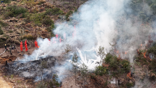 演練以模擬真實火災情景為核心,通過“火場偵察——前期處置——高強度地表火撲打——上山火處置與緊急避險——樹冠火處置——火場清理”六大連貫場景,完整還原火災從初發到撲滅的全鏈條過程?,F場隊員靈活運用油鋸、劈山機、風力滅火機、滅火彈等裝備,并借助無人機勘察火情,高效開展撲火行動。整個過程中,各小組動作規范、銜接緊密,既展現了對專業裝備的熟練運用能力,也凸顯了跨單位協同作戰的默契,真正將“實戰化”要求落到了每一個環節。